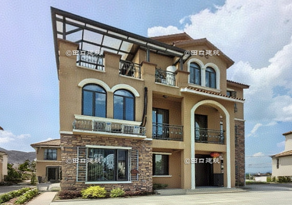 占地面積 116.4㎡ 土建造價 35.0萬 兩層西班牙風格別墅